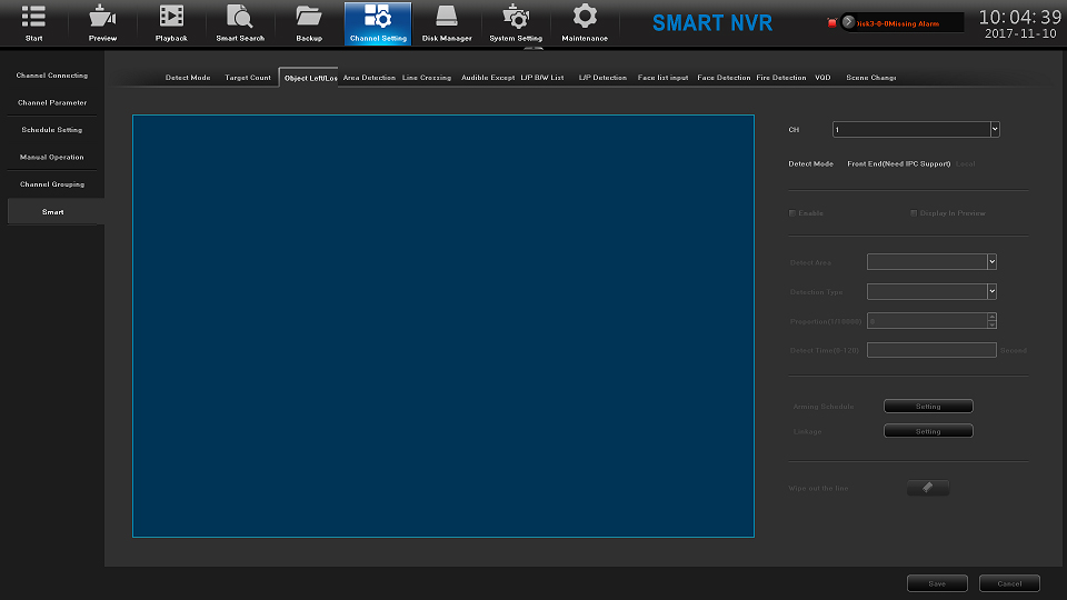 | • Prise en charge de l’analyse NVRsmart (nombre de cibles, détection d’objets, détection de zone, cordon virtuel, transformation de scène). |